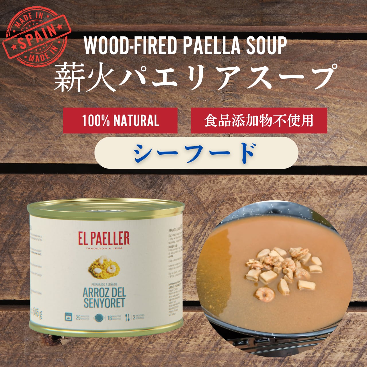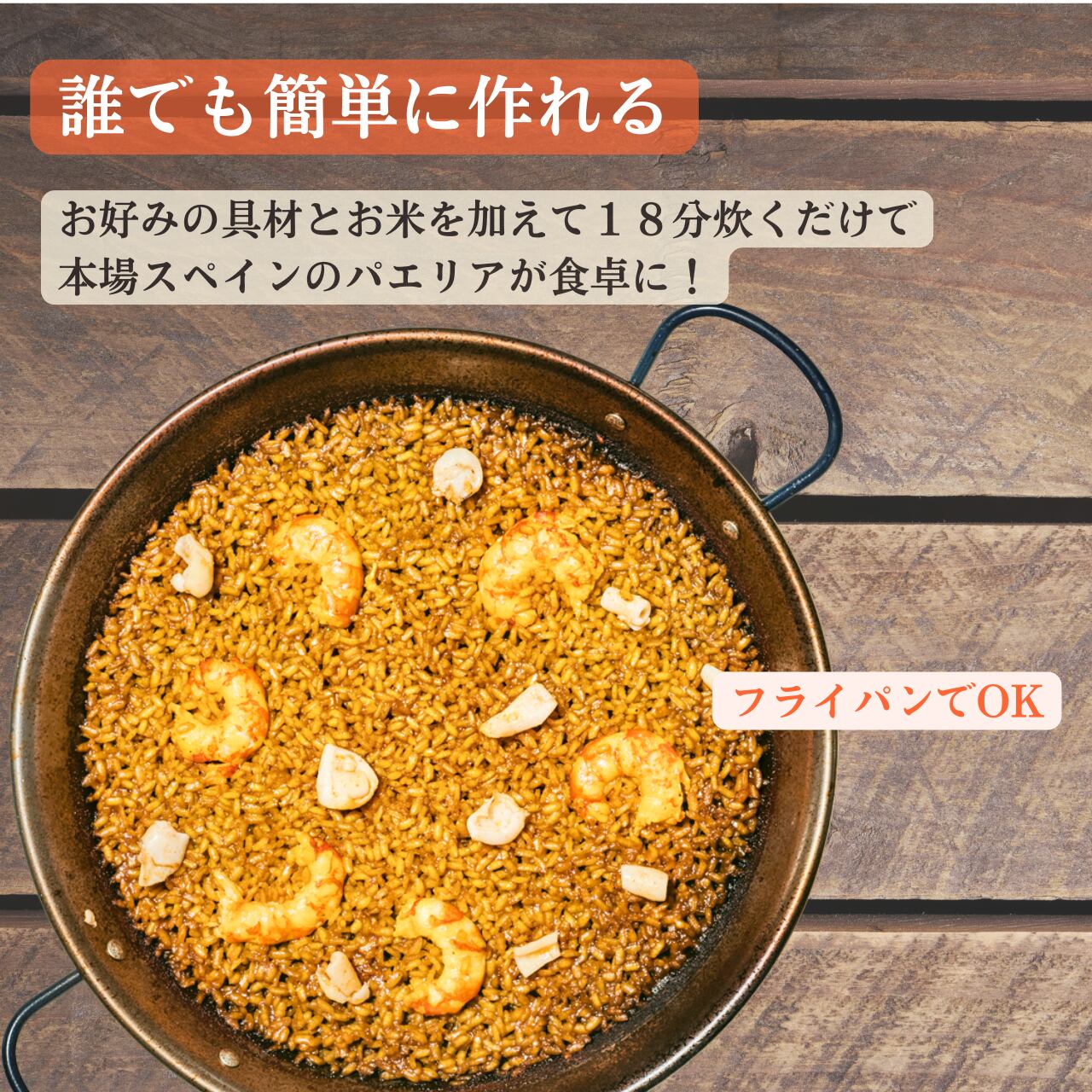 化学調味料や保存料は一切不使用。100%スペイン産の天然素材だけを厳選し、薪火で炊き上げた具入りパエリア用スープです。